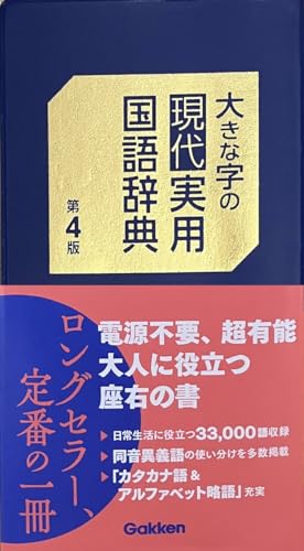 大きな字の現代実用国語辞典 第4版は、見やすい大文字を採用し、幅広い語彙を収録。わかりやすい解説で、学生から一般まで幅広い層に対し、日常的に使える信頼性の高い辞典です。