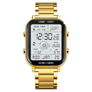 CARLIEN メンズ デジタル スポーツ 多機能 腕時計 ストップウォッチ LED ディスプレイ 3D 歩数計 宇宙 天文学 宇宙飛行士 カレンダー カロリー 計算 防水 読みやすい クォーツ 腕時計 カジュアル ゴールド