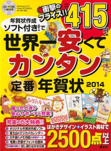 「世界一安くてカンタン定番年賀状2014」は、年賀状作成ソフト付きで、シンプルな操作で手軽にオリジナル年賀状が作成できます。豊富なデザインテンプレートも魅力です。