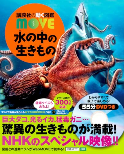 『水の中の生きもの (講談社の動く図鑑MOVE)』は、水中生物の多様性を豊富な写真と詳細な解説で紹介する図鑑です。写真にQRコードが付いており、動く映像が楽しめるのが特徴です。