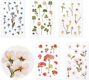シール 押し花 (5枚セット) 手帳シール 和紙シール ノートシール 透明シール 勿忘草 桜 ゼラニウム デイジー 四つ葉のローバー DIY 手作り ステッカー 日記 ダイアリー カレンダーアルバム 家計簿 パッケージバッグ付き 勿忘草+桜+ゼラニウム+デイジー+四つ葉のローバー