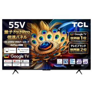 TCL 55V型 4K液晶 倍速 テレビ 量子ドットPro 55C655 Google TV AirPlay2 ネット動画対応 Dolby Atoms ゲームモード HDMI2.1対応 4Kチューナー内蔵 Alexa対応 2024年モデル