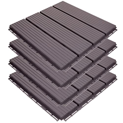 OUNONAの4個インターロッキングデッキルは、屋外用のプラスチック床材で、バルコニーやテラスに最適です。模造デザインでスタイリッシュ、簡単設置が可能です。
