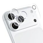 iFace iPhone 17 Pro Max専用の強化ガラスカメラレンズ保護カバー。メタルシルバー仕上げで表面硬度9H、キズが付きにくく、飛散防止加工が施されています。