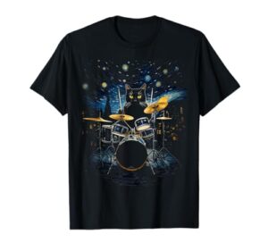 ドラムキット パーカッショニスト ドラマー ゴッホ 猫 ドラムを弾く Tシャツ