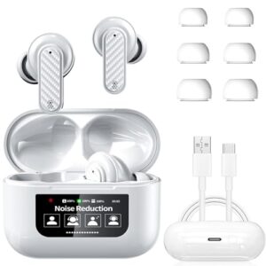 AI言語翻訳イヤホンリアルタイム、144言語オンラインおよびオフライン翻訳イヤホン、サブスクリプション不要、スマートタッチスクリーンハウジング、iOSとAndroidに対応 (ホワイト)