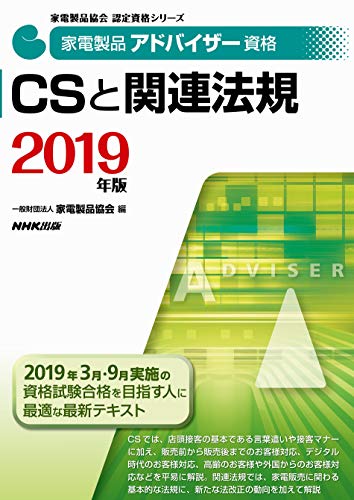 家電製品アドバイザー資格 CSと関連法規 2019年版は、家電製品協会が認定する資格で、家電製品に関する知識や関連法規を学び、販売やサービスの向上を目指すための教材です。
