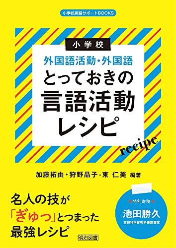 「小学校外国語活動・外国語 とっておきの言語活動レシピ」は、児童の英語力を育むための実践的な活動例が豊富に掲載されています。教師向けの参考書として、楽しい授業のプランが盛り込まれています。