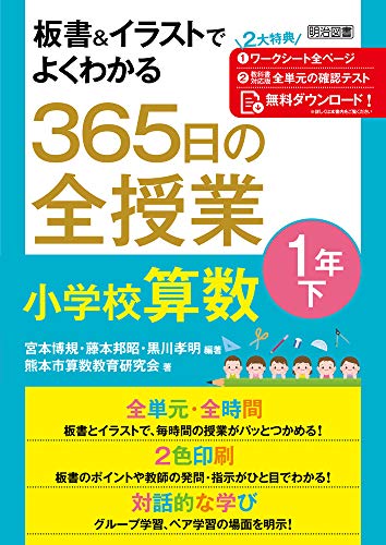 『板書&イラストでよくわかる 365日の全授業 小学校算数 1年下』は、1年生の算数を365日分の授業形式で解説。図解やイラストを用い、理解を深める内容です。楽しく学べる工夫が満載。