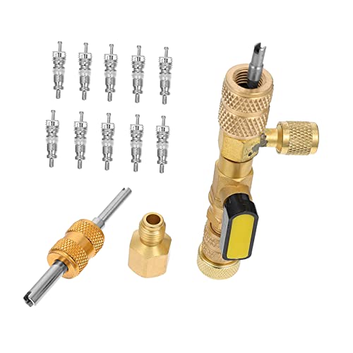GETAJGHSD コアリムーバーインストーラーは、真鍮製のタイヤコアプーラーで、滑り止めノブ付き。DIYエアコン配管修理や自動車整備に最適な工具です。