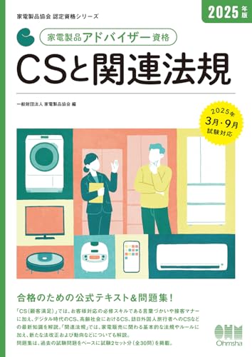2025年版 家電製品アドバイザー資格 CSと関連法規は、家電製品協会が認定する資格で、消費者の理解を深めるための内容が含まれています。関連法規や家電製品の基礎知識を習得できる教材です。