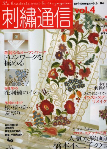 刺繍通信 vol.4(2004年春夏号)は、刺繍に関する最新情報や技法、作品紹介を掲載した特集号です。新しいデザインや刺繍素材も紹介し、初心者から経験者まで楽しめる内容になっています。