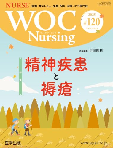 WOC Nursing第120号Vol.13No.6では、精神疾患と褥瘡に関する最新の製品情報が特集されています。褥瘡予防のための革新的な治療法や器具、精神的サポートを提供する製品について詳しく掲載されています。