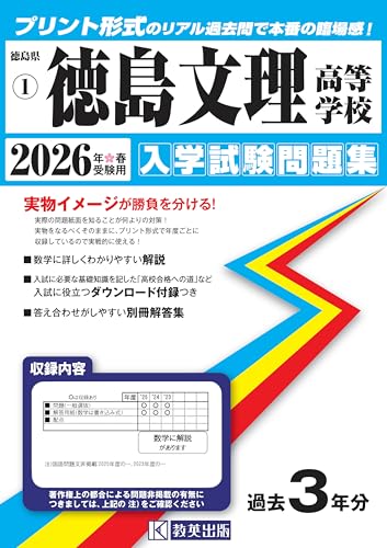 徳島文理高等学校入学試験問題集2026年春受験用。プリント形式のリアル過去問を収録し、本番の臨場感を体験できる教材。徳島県の高等学校受験に対応した一冊。