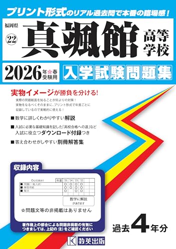 真颯館高等学校の2026年春受験用入学試験問題集。リアルな過去問形式で、本番の臨場感を体験できます。福岡県高等学校に特化した内容です。