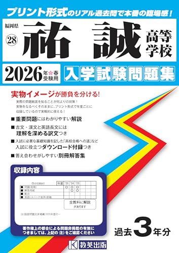 祐誠高等学校の2026年春受験用入学試験問題集です。プリント形式のリアルな過去問が収録されており、本番の臨場感を味わえます。福岡県高等学校関連の問題もおさえており、受験生に最適な一冊です。