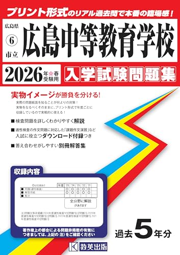 市立広島中等教育学校の2026年春受験用入学試験問題集。リアル過去問形式で、本番の臨場感を体験できる。広島県中学校6に対応。