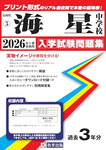 海星中学校 入学試験問題集 2026年春受験用(プリント形式のリアル過去問で本番の臨場感!) (長崎県中学校 5)の製品情報