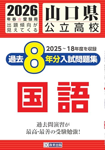 山口県公立高校の過去8年分の入試問題集『国語』は、2026年春受験向けに収録されています。最新の傾向を踏まえた問題が含まれ、実践的な学習が可能です。
