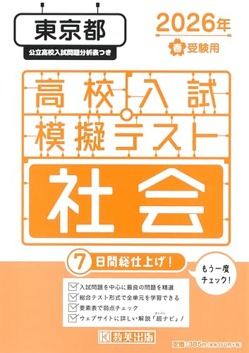 2026年春受験用の東京都高校入試模擬テスト社会科では、最新の出題傾向を反映した問題集を提供。解説付きで、実践的な学習が可能です。模試と解答解説をセットにして、効率的な受験対策をサポート。