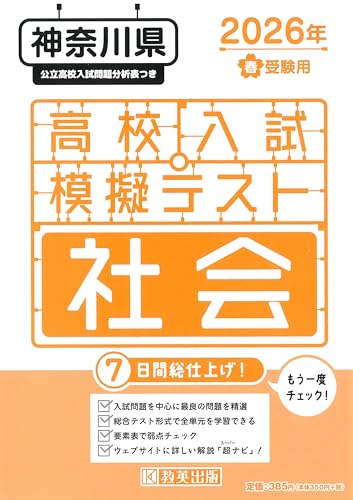 2026年春受験用の神奈川県高校入試模擬テスト社会科の製品情報です。最新の出題傾向を反映し、過去のデータをもとにした実践的な問題集。全問解説付きで、受験対策に最適です。