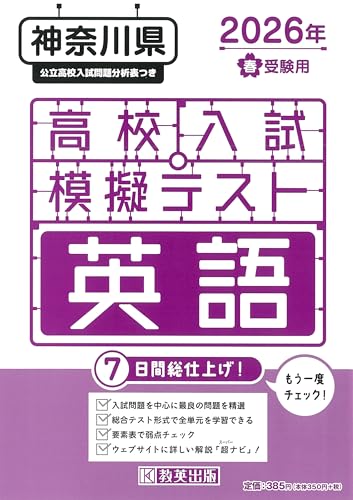 2026年春受験用神奈川県高校入試模擬テスト英語版。最新の出題傾向に基づく問題を収録し、効率的な学習をサポートします。解説付きで理解を深め、実力をチェックできる一冊です。