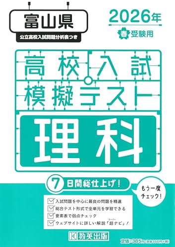 2026年春受験用の富山県高校入試模擬テスト理科は、最新の出題傾向を反映し、実際の試験に即した問題構成。解説も充実しており、理解を深めるための参考書として最適です。