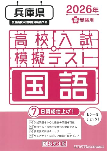 「高校入試模擬テスト 国語 兵庫県 2026年春受験用」は、最新の入試傾向に基づいた問題集です。理解を深める解説付きで、実践的な演習が可能。中学生向けの重要ポイントもカバー。
