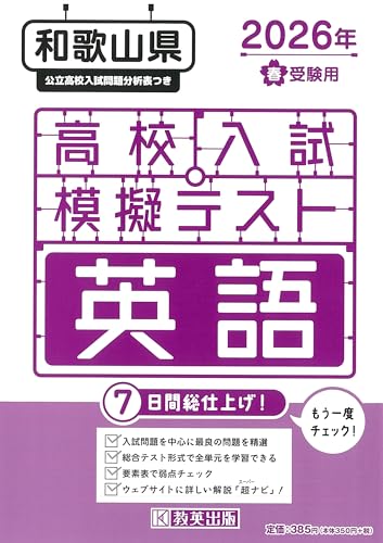 和歌山県の高校入試模擬テスト英語版2026年春受験用。最新の問題傾向を分析し、実践的な問題集を収録。予想問題や解説付き。受験対策に最適!