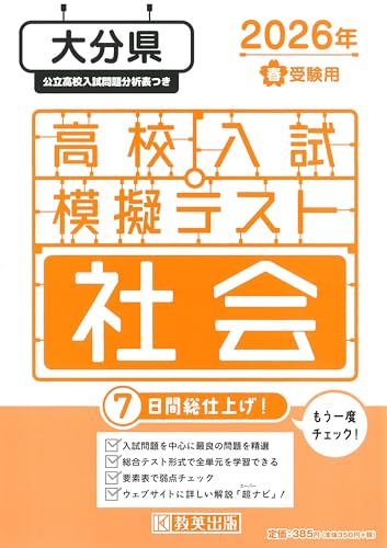 2026年春受験用大分県高校入試模擬テスト。最新の試験傾向を反映し、重要問題を厳選収録。解説付きで理解を深め、合格力を高める内容。購入特典としてオリジナル問題集も!