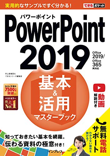 「できるポケット PowerPoint 2019 基本&活用マスターブック」は、Office 2019/Office 365対応。動画解説付きで、基本操作から活用術までを学べる便利な一冊です。