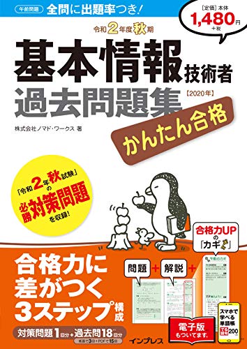 (PDF・スマホ単語帳付)「かんたん合格 基本情報技術者過去問題集 令和2年度秋期」は、基本情報技術者試験の過去問題を収録した教材です。合格を目指す方に最適な内容で、効率的な学習をサポートします。