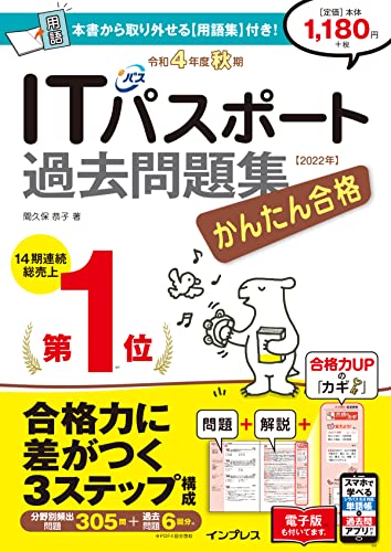 「かんたん合格ITパスポート過去問題集 令和4年度 秋期」は、ITパスポート試験対策のための過去問題集です。全文PDFや単語帳、過去問アプリが付いており、効率的に学習が可能です。