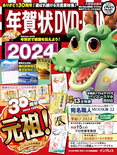年賀状DVD-ROM2024は、インプレスが提供する年賀状作成用のムックです。多彩なデザインやテンプレートが収録され、簡単に自分だけのオリジナル年賀状が作成可能です。