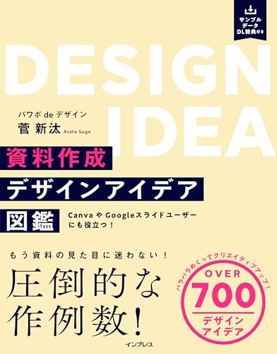 資料作成デザインアイデア図鑑は、デザインのインスピレーションを提供する資料集です。サンプルデータDL特典付きで、さまざまなスタイルやレイアウトを実践的に学べます。