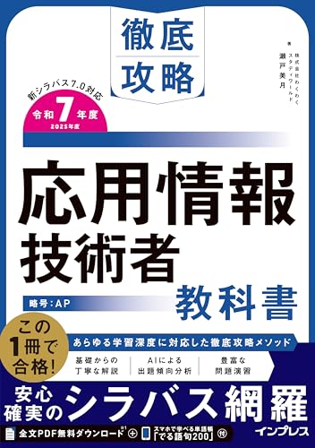 「徹底攻略 応用情報技術者教科書 令和7年度」には、PDF形式の全文と単語帳アプリが付属。情報処理技術者試験に特化した内容で、効率的な学習が可能です。