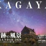 2026年版KAGAYA奇跡の風景カレンダー。月めくりで壁掛けタイプ、サイズは600mm×380mm。購入者にはオリジナルスマホ壁紙画像のデータも配信。