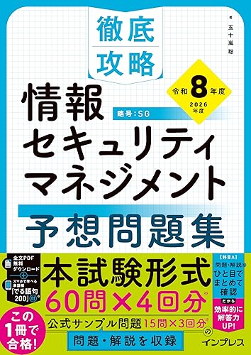 (全文PDF・単語帳アプリ付) 徹底攻略 情報セキュリティマネジメント予想問題集 令和8年度は、最新のセキュリティ動向を反映した問題を収録し、実践的な学習を支援します。