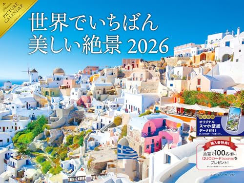 2026年版 世界の美しい絶景カレンダー。美しい風景写真を12ヶ月分収録。日付・祝日も明記、インテリアにも最適。心癒される瞬間を毎月お楽しみください。
