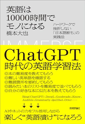英語は10000時間でモノになるは、日本語を断ち、ハードワークで効率的に英語力を向上させる実践法を紹介。挫折せずに学べるメソッドが満載で、運用可能なテクニックを学ぶことができます。