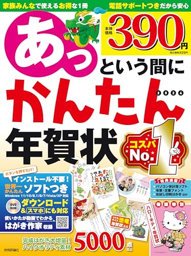 あっという間にかんたん年賀状 2024年版は、豊富なデザインと簡単操作でおしゃれな年賀状が作れるソフトです。テンプレートやイラストも充実しており、初心者でも楽しく作成可能です。