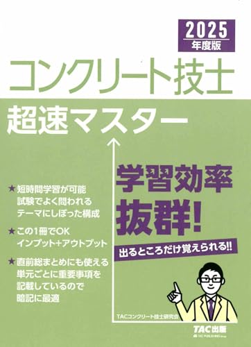 コンクリート技士超速マスター 2025年度版は、TAC出版から刊行された一冊で、インプットとアウトプットを効率的に学べる教材です。資格試験対策に特化した内容で、独学に最適です。