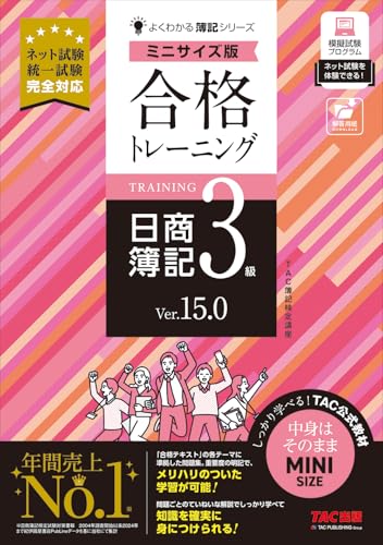 合格トレーニング 日商簿記3級 Ver.15.0 ミニサイズ版は、TAC出版のよくわかる簿記シリーズに属する教材です。ネット試験や統一試験に完全対応しており、効率的な学習をサポートします。