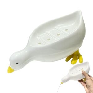 アヒル形ソープディッシュ,漫画 風 バスルーム 用品 浴室 備品 | 水切り付き石鹸ホルダー – 動物愛好家 ホームオーナー 自宅 キッチン 洗面台 シャワー棚 バスタブ ランドリールーム 寮 ホテル 向け