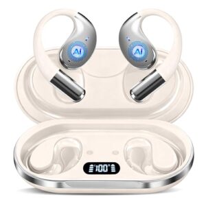 イヤホンAI翻訳機 双方向同時通訳 高精度 通訳機 軽量 144言語対応 音楽・通話対応 指向性ノイズ低減 ハンズフリートーク 音声翻訳機 ワイヤレスイヤホン 耳掛け式 翻訳機 数字LEDディスプレイ 音漏れ抑制 EDR技術 Hi-Fi音質 防水 60時間連続再生 Bluetooth5.4 接続 専用アプリ iOS&Android対応 海外旅行 出張(オフホワイト)