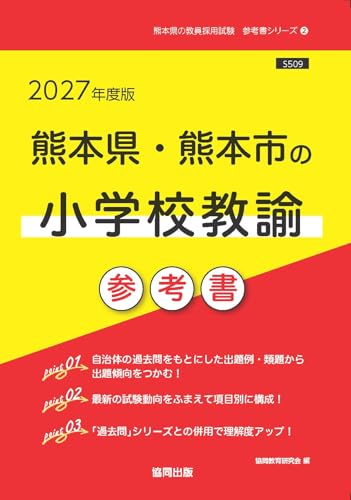 2027年度版 熊本県・熊本市の小学校教諭 参考書は、熊本県の教員採用試験に特化した内容で、重要ポイントや問題集を網羅。受験者必携の一冊です。