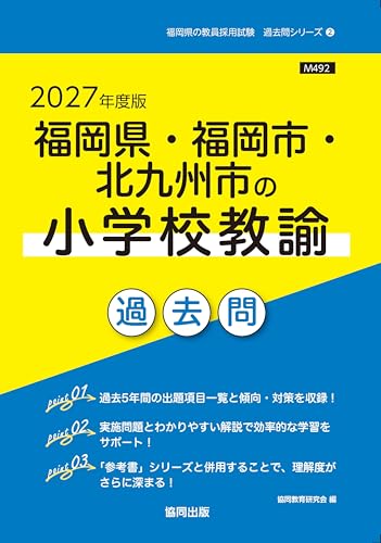 2027年度版福岡県・福岡市・北九州市の小学校教諭過去問シリーズ。福岡県の教員採用試験対策に特化した問題集で、過去の試験問題を収録し、解説も充実。効果的な学習をサポート。