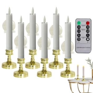 Christmas Window Candles, 6X Warm Wick Candles, Realistic Flickering Light with Suction Cups, 6.5 Inch Battery-Powered Warm Light Candles for Fireplace, Wedding, Holiday Decorations
