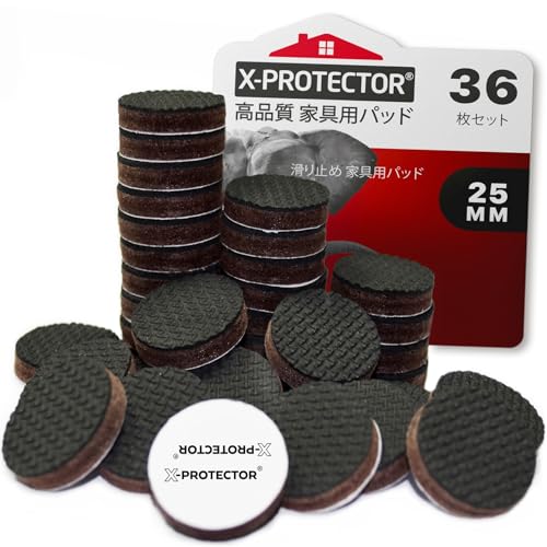 X-Protector滑り止め家具パッドは、36個入りのゴム製グリッパーです。サイズは2.5cmで、黒と茶色の2色展開。家具脚に取り付けることで、ズレや傷を防ぎ、床を守ります。