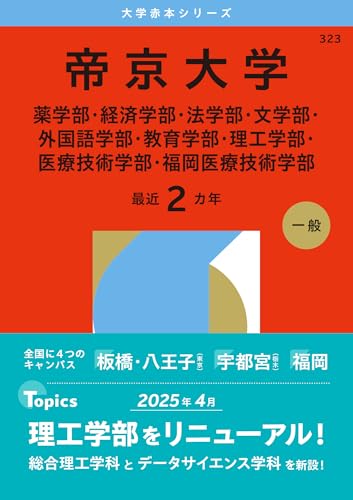 帝京大学の2026年版赤本は、入試情報や問題解説を含む必携の参考書です。最新の入試傾向を反映し、受験生にとって役立つ内容が充実しています。